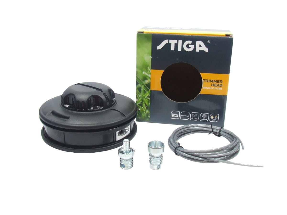 Głowica o średnicy 130 mm. Zestaw zawiera dwa adaptery M10x1,25 lewy gwint żeński oraz M8x1,25 lewy gwint męski, dzięki czemu głowica jest kompatybilna z wieloma modelami. Specjalna technologia Easy Load gwarantuje doskonałą wydajność i oszczędność czasu. Praktyczna konstrukcja głowicy umożliwia łatwe wkładanie i nawijanie żyłki bez konieczności rozbierania głowicy na części pierwsze. Ta głowica może również pomieścić zarówno okrągłe, jak i kwadratowe żyłki o średnicy nawet do 4 mm.