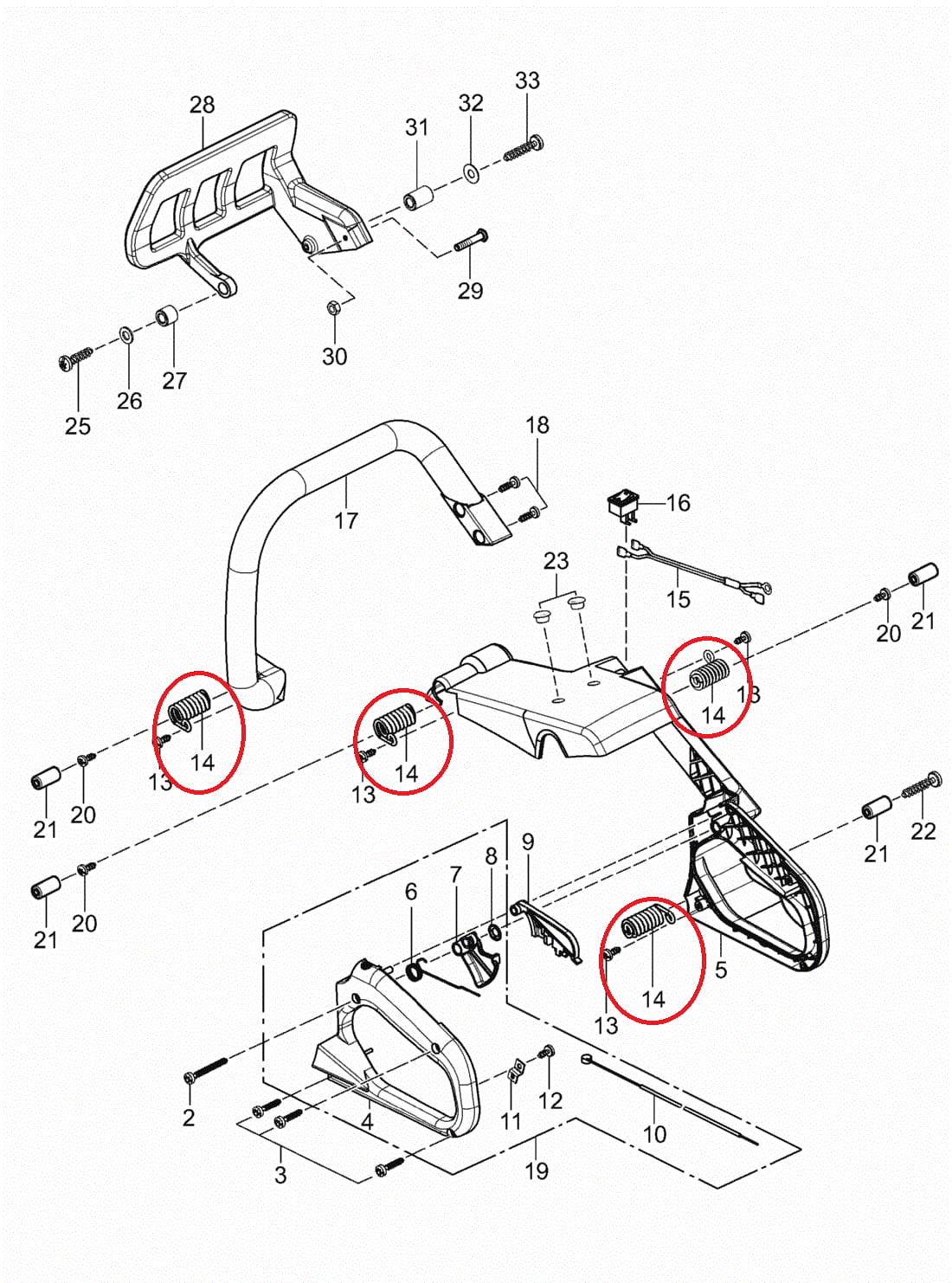 ZDJĘCIE SCHEMATU Z ZAZNACZONYM AMORTYZATOREM (NA PODSTAWIE MODELU PILARKI 640)