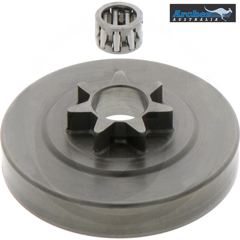 BĘBEN SPRZĘGŁA Z ZĘBATKĄ STAŁĄ (7 ZĘBÓW) POD ŁAŃCUCH 3/8" + ŁOŻYSKO IGIEŁKOWE