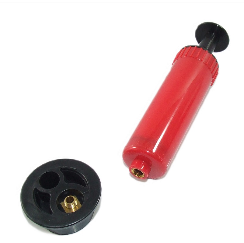 Odsysarka wyposażona jest w ręczną pompkę, poruszanie rączką pompy w górę i w dół wytwarza próżnię i pompuje płyn poprzez wąż ssący do zbiornika.